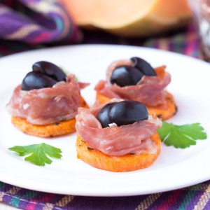 Receta otoñal para Todos los Santos… montadito de boniato con jamón serrano Argal.