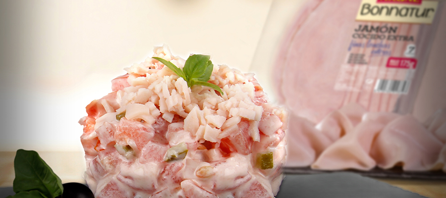 • Una vez todas las verduras mezcladas en el mismo bol, añade el jamón cocido Argal Bonnatur previamente troceado. Aliña la mezcla con sal, pimienta y aceite de oliva. Remuévelo todo bien para que los ingredientes saquen su máximo sabor.