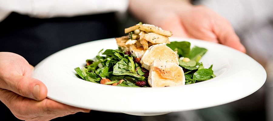 Ensalada templada de jamón curado de pavo y queso de cabra