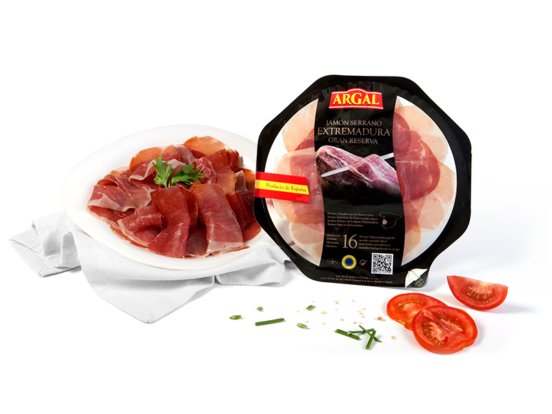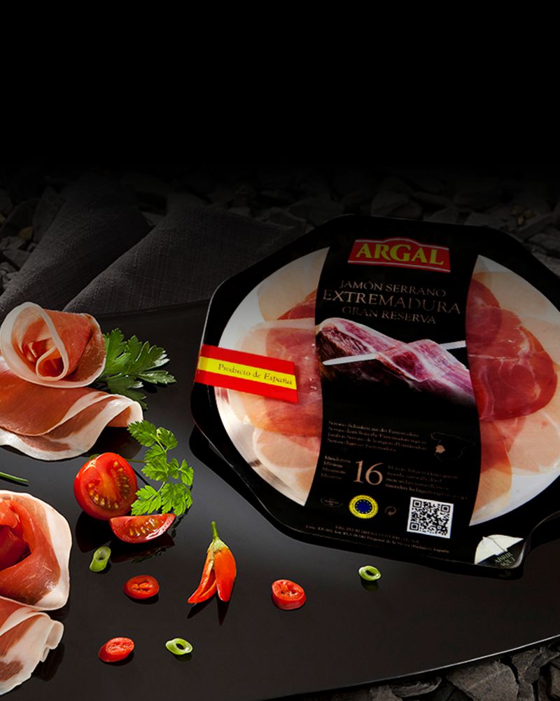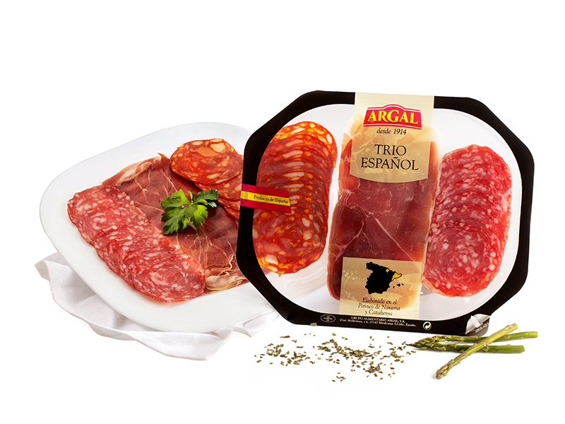 This is the formula for a complete range of serrano ham and sausages from Navarra, lomo and Ibérico products from Extremadura, specially selected for their high quality and flavour.The products are presented in slices arranged in a fan shape on a plate, easy, convenient and ready-to-eat. In addition to preserving the aroma and flavour, each slice is very easy to separate, ideal for a great snack or to place on a dish.